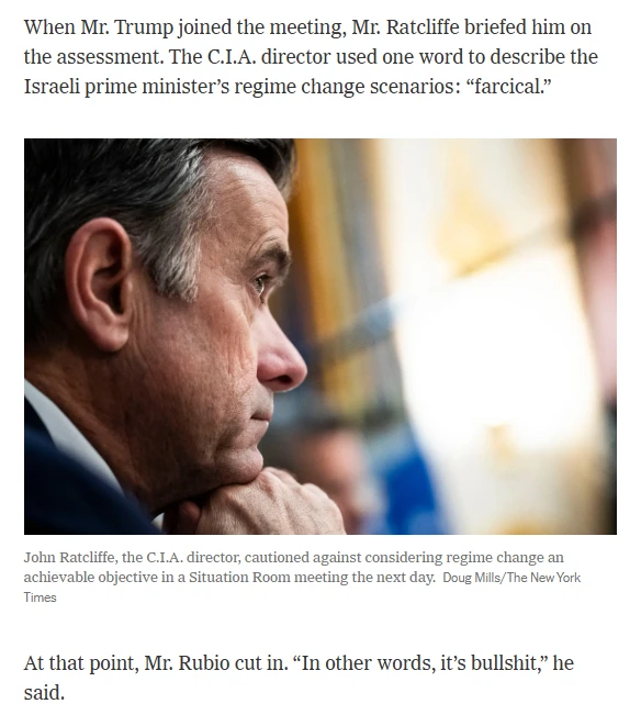 According to sources, Ratcliffe described Netanyahu’s scenarios as “farcical,” prompting Rubio to distill the message further by quipping, “In other words, it’s bullshit.” This moment reflects a broader unease among Trump’s advisors regarding his grasp of foreign policy terminology, raising questions about their perception of his understanding of complex geopolitical issues. There’s also a lot of concern across party and ideological lines about his state of mind.